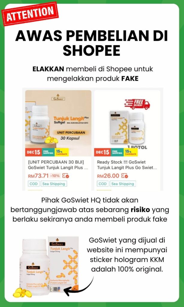 Jika mempunyai penyakit kronik, kegagalan buah pinggan, kegagalan fungsi hati TIDAK DIGALAKKAN untuk cuba, jika ingin CUBA dicadangkan cuba 1 biji terlebih dahulu. Namun, tiada jaminan pulih seperti biasa.